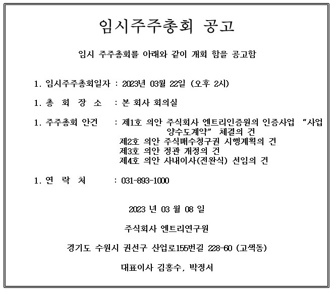 [엔트리연구원] 2023년 임시주주총회(2차) 소집공고