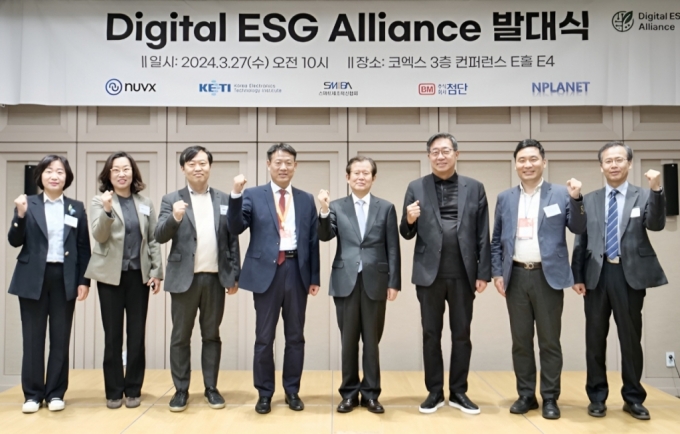 글로벌 환경 규제 대응을 '디지털 전환'하기 위해 41개 기업 및 기관이 연합체를 결성했다. 27일 '디지털 ESG 얼라이언스' 발대식이 서울 코엑스에서 열렸다.